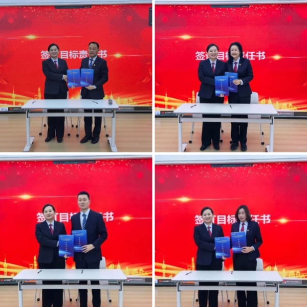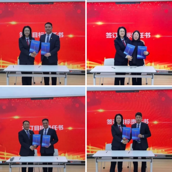 隨后,在激昂的音樂(lè)中,各負(fù)責(zé)人依次上臺(tái)簽訂目標(biāo)責(zé)任書(shū),首先總經(jīng)理鄭曉娟女士與四個(gè)事業(yè)部、市場(chǎng)開(kāi)發(fā)部負(fù)責(zé)人分別簽訂目標(biāo)責(zé)任書(shū);其次分管副總與各自部門負(fù)責(zé)人簽訂目標(biāo)責(zé)任書(shū),大家?guī)е?zé)任和目標(biāo)展望2025年。